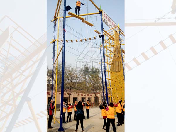 規(guī)格:占地42米長×6米寬,主體長41.5米×寬6米×高8米。 包含項目:獨木橋、翹板橋、橫渡天梯、吊索橋、斷橋、攜手并進、相互依存、禮讓通行、網墻(2…